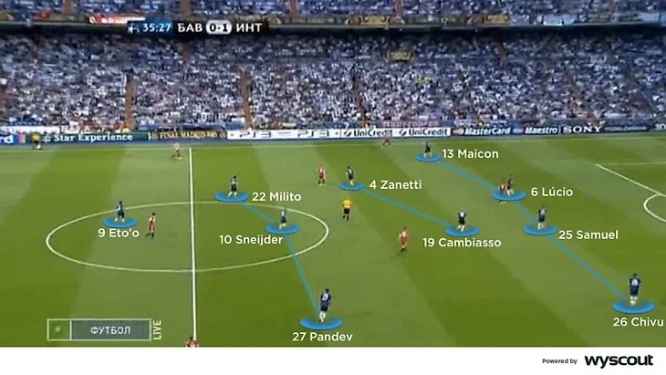 «Интер» Моуринью был построен на чрезвычайно организованном низком блоке, который в течение длительного времени выдерживал давление, чтобы морально и стратегически изматывать соперников. Прекрасная, опытная оборона сочеталась с такой же опытной атакой.