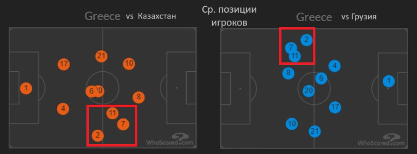 У Грузии очевидно сильнее состав, чем у Казахстана, и им в некоторой степени проще выполнять установку тренера. Но посмотрев оба матча мне бросились в глаза некоторые отличия в стартовых планах, которые и определили разницу между 0:0 и 0:5.