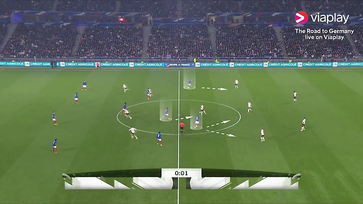 Это было необходимо, чтобы настроить соперника на подготовку прессинга. Французы начали ориентироваться на пас назад/поперек.