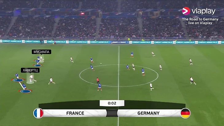 Сборная Германии начала молниеносно: 20-летний Флориан Виртц из «Байера» ударил и попал в ворота Франции.