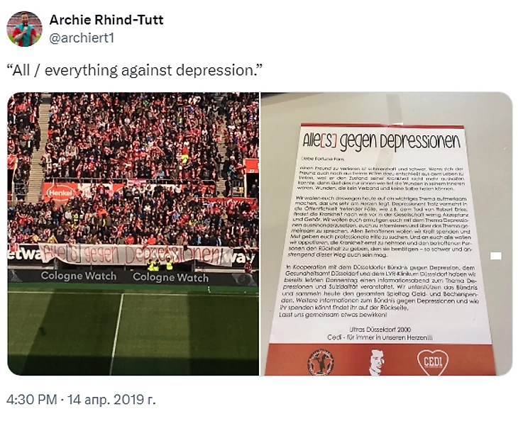 От редакции блога: перевод посвящается Вячеславу Авраменко – болельщику «Шальке» и члену российского фанклуба «Russische Knappen», страдавшему депрессией. В июле 2022 года после продолжительной борьбы с болезнью он покончил с собой.