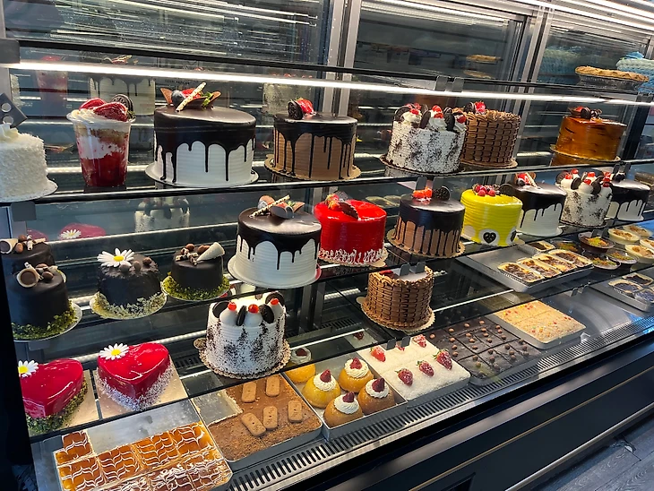 А это витрина небольшого грузинского кафе со вкуснейшими тортами, я всегда здесь делаю остановку. Я поздравил хозяев (мать и сына) с выходом сборной Грузии на Евро. Они признались, что за футболом не следят и больше всего не любят дни дерби с «Арсеналом». Фанаты сладости не покупают, а вот неприятностей доставить могут.