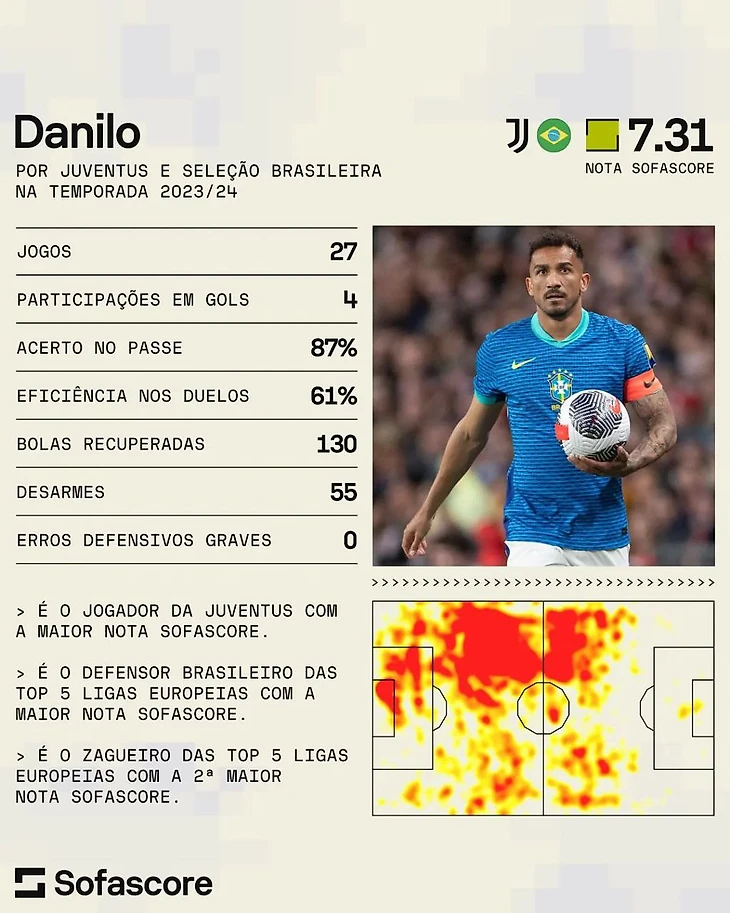 Отмечу капитана Данило ,который как вино с годами только лучше становится. И до капитана «Ювентуса» дорос и новое амплуа освоил, и в сборной стал образцом надежности. В матче с Англией по-моему ни единой помарки не было.