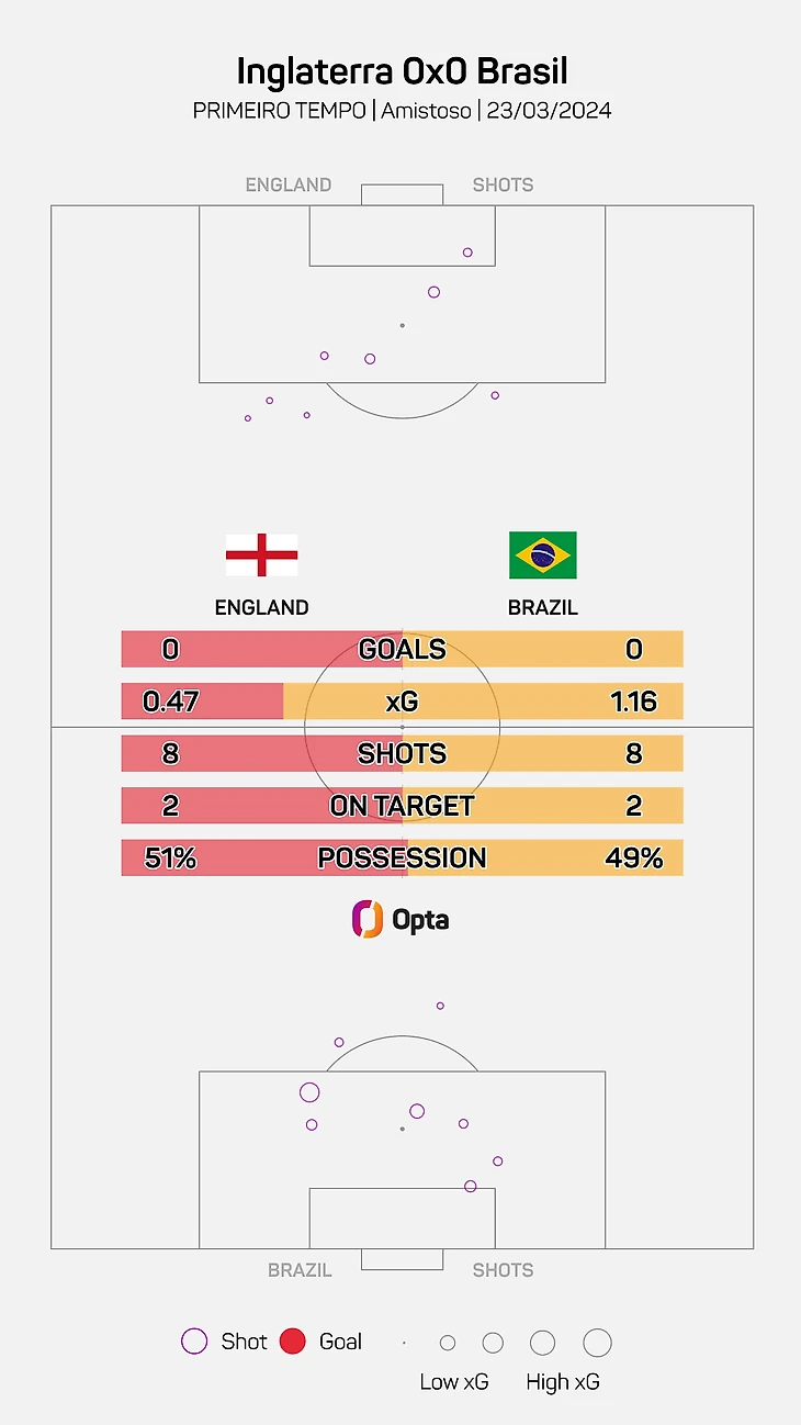 хG после первого тайма в 1,16 гола является лучшим показателем Селесао после игры с Боливией в сентябре 2023 года – тогда было 2,37 xG