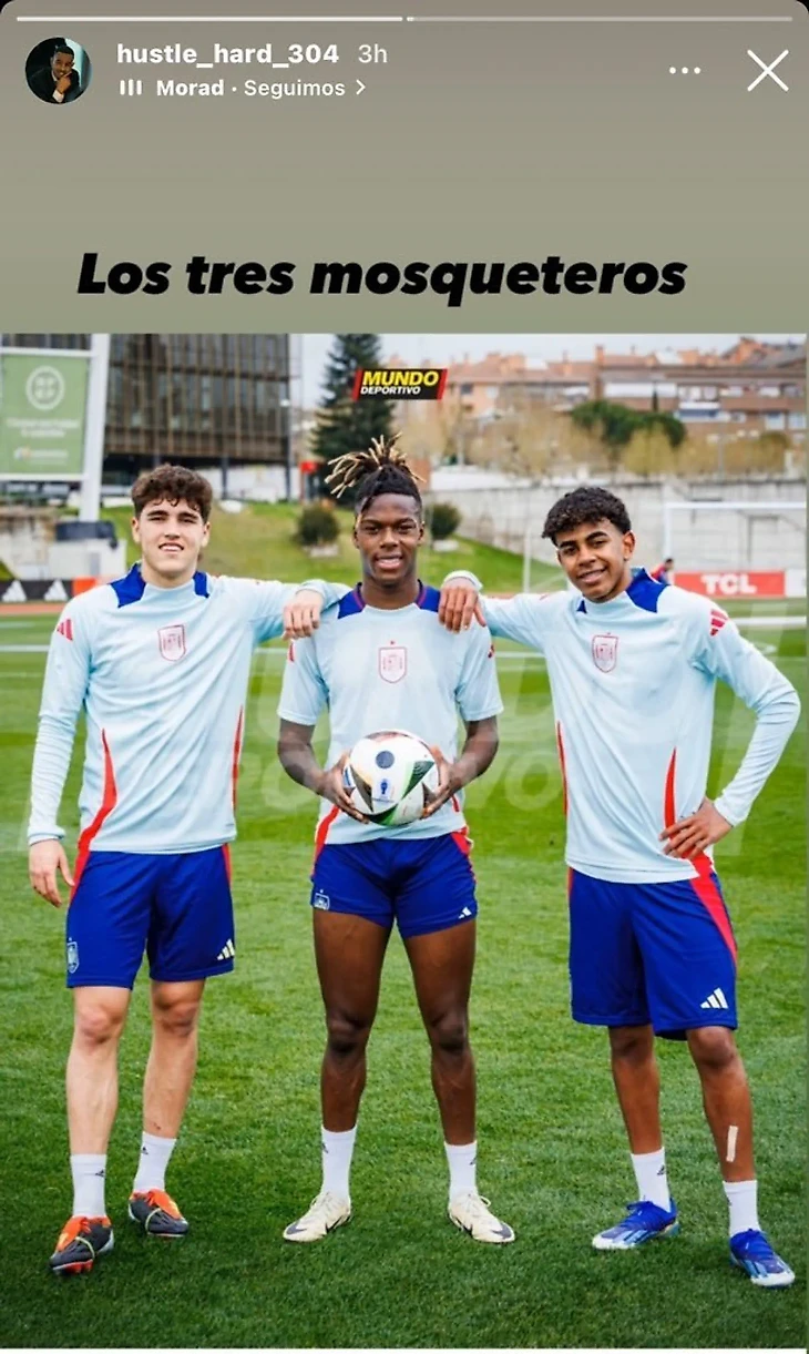 Отец Ламина Ямаля Мунир Насрауи поделился фотографией, на которой запечатлены Ламин, Пау Кубарси и Нико Уильямс.