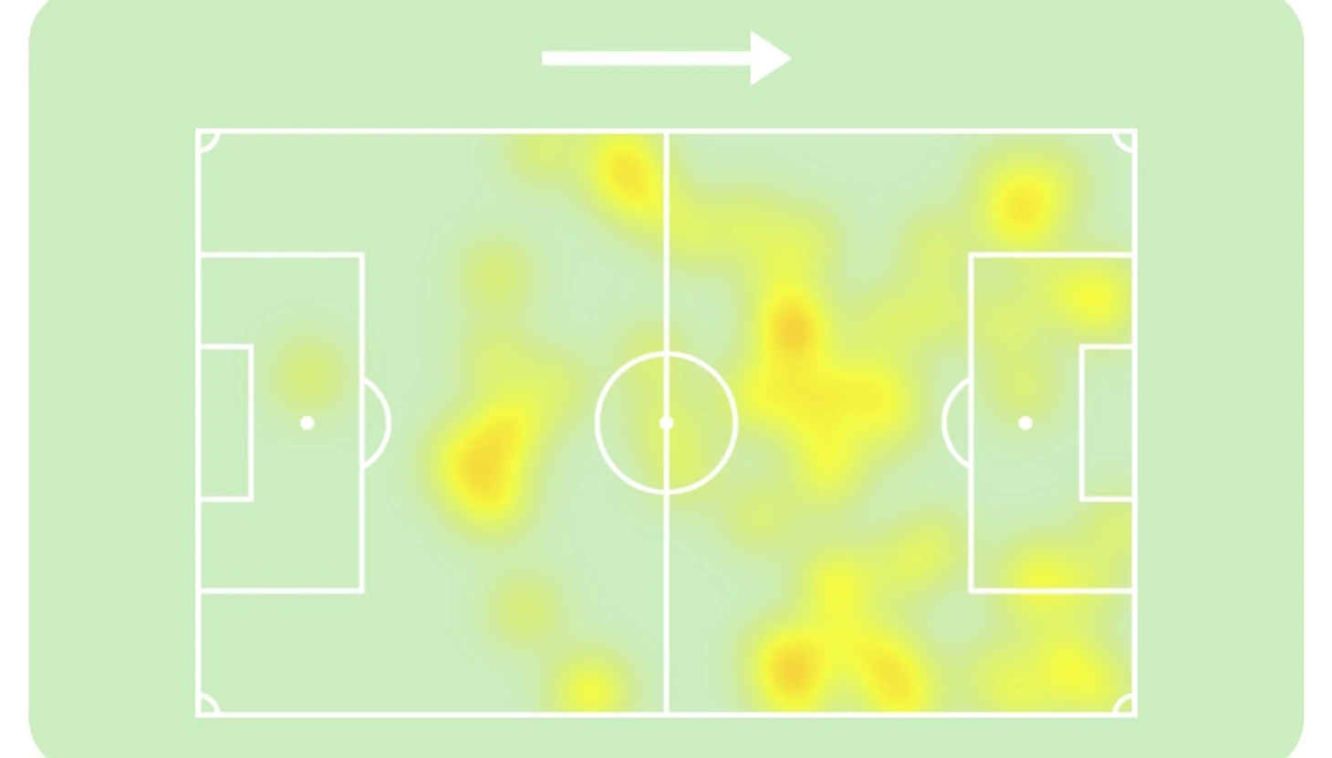 И при всех его расположениях на поле, Хвича неизменно остаётся свободным художником в строгой расстановке француза. Вот например тепловая карта и карта ударов Хвичи в матче с греками.