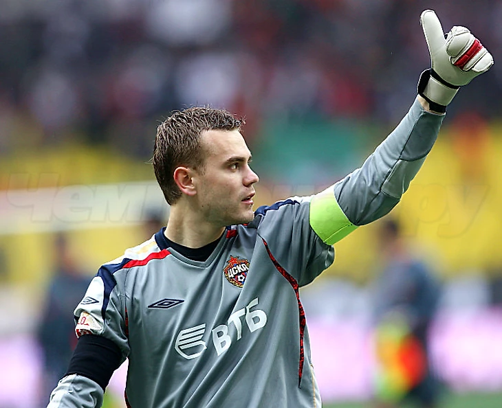 Первый свой матч на взрослом уровне провёл 29 марта 2003 года за ЦСКА в 1/8 финала кубка РФПЛ против петербургского «Зенита» на «Петровском»: вышел на второй тайм вместо Дмитрия Крамаренко и отыграл свой отрезок «на ноль», продемонстрировав хладнокровие и хорошую реакцию.