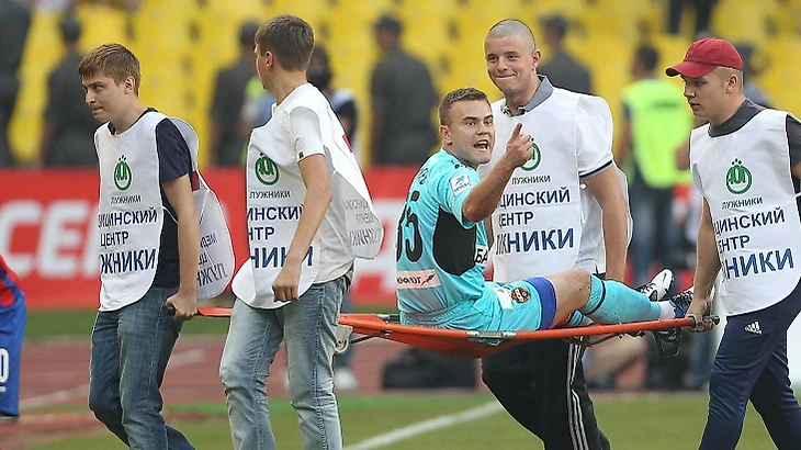 6 мая 2007 года, в матче 8-го тура чемпионата России против «Ростова» Игорь Акинфеев получил тяжёлую травму. После борьбы за верховой мяч в штрафной с Миланом Вьештицем последний буквально упал Акинфееву на колено. Вратаря экстренно заменили. У Акинфеева был диагностирован разрыв крестообразных связок колена: врачи сомневались, что вратарь сможет вернуться до конца сезона. Однако интенсивное лечение помогло Акинфееву вернуться в команду до окончания чемпионата. Первый матч после травмы он провёл 3 ноября 2007 года в рамках 29 тура против «Кубани» (1:0).