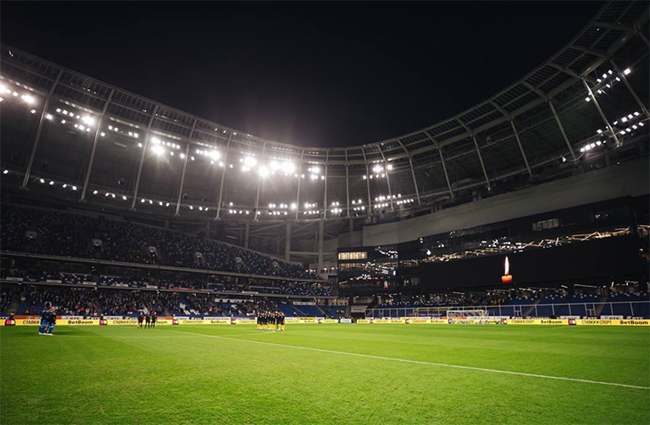Перед матчем провели минуту молчания. На стадионе звучала песня Марка Бернеса «Журавли» – проникновенно.
