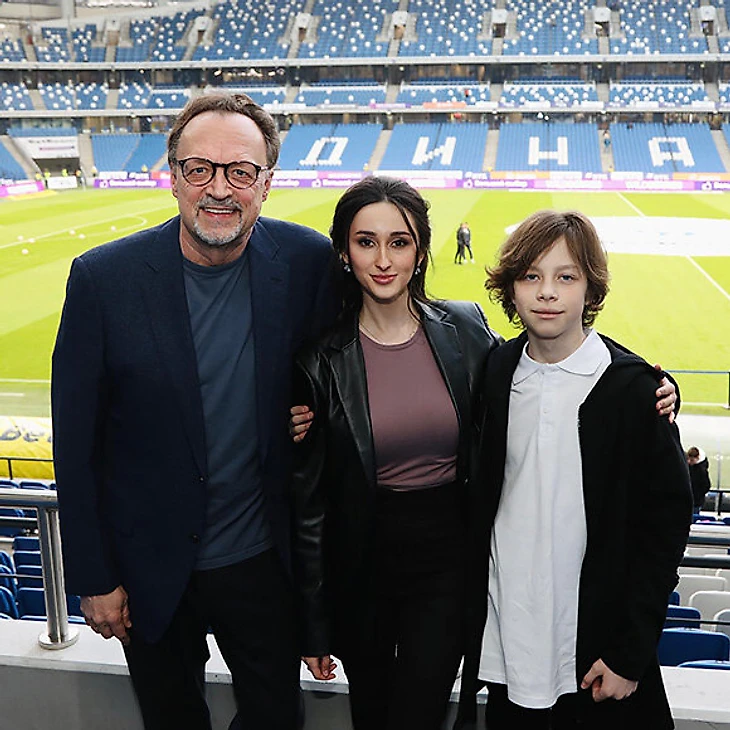 Перед свистком на поле вышел Виктор Гусев вместе с Софией и Донсковым. Комментатор произнес пронзительную речь.