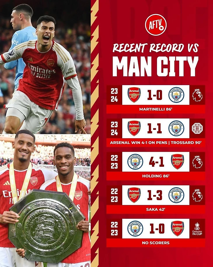 Выше представлены последний 5 встреч между командами во всех турнирах. Банда Пепа стабильно побеждала во встречах с «Арсеналом», но в последних двух матчах «канониры» прерывали проклятие и брали верх. Примечательно, что в последний раз «Арсенал» побеждал на «Этихаде» в 2015 году.