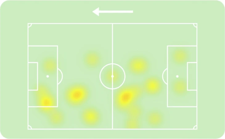 Его действия в матче с Леверкузеном (и не только) прекрасно доказывают это. Ему комфортно опускаться глубже в полузащиту для создания атак. Также 80-85% действий Байера приходится на левый фланг, поэтому для него не составит труда исполнить и роль вингера. Байер провёл на поле 73 минуты, забил гол и заработал 0,32 xG.