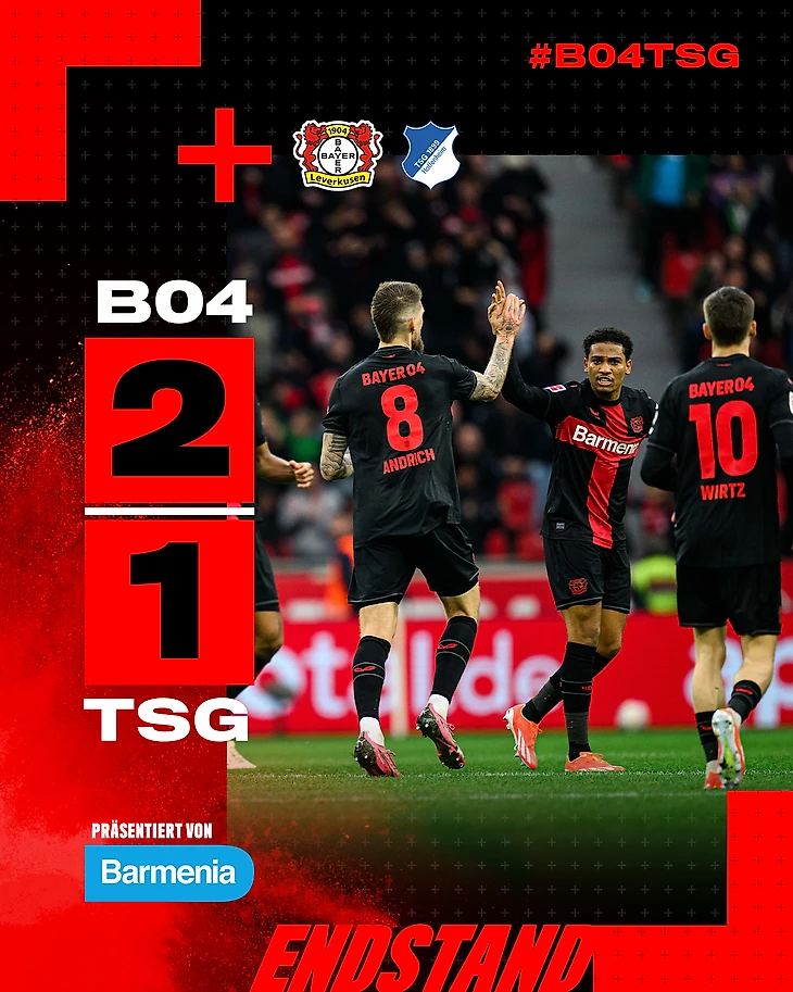 Таким образом, невероятная серия продолжается: «Байер 04» остался непобежденным в своей 39-й официальной игре в этом сезоне, одерживая победу над «Хоффенхаймом».