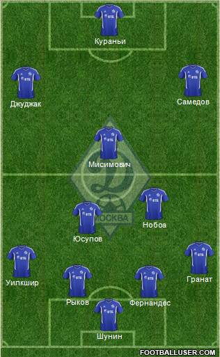«Динамо»: Шунин – Фернандес, Рыков, Уилкшир, Гранат – Юсупов, Нобоа, Мисимович, Джуджак, Самедов – Кураньи.