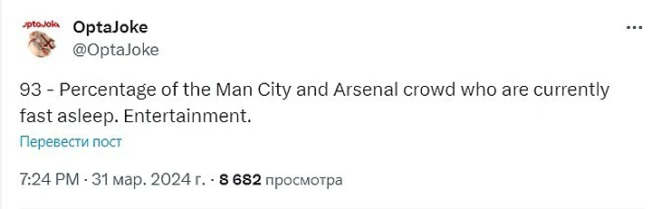«93 – процент фанатов «Ман Сити» и «Арсенала», которые сейчас уже уснули. Развлечение».