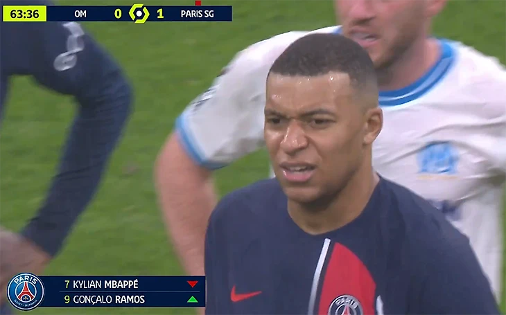 Просто оцените эту реакцию. Мбаппе пока не привык, что его снимают: то уходит на трибуну к маме, как с «Монако», то просто недоволен. Как в этот раз.