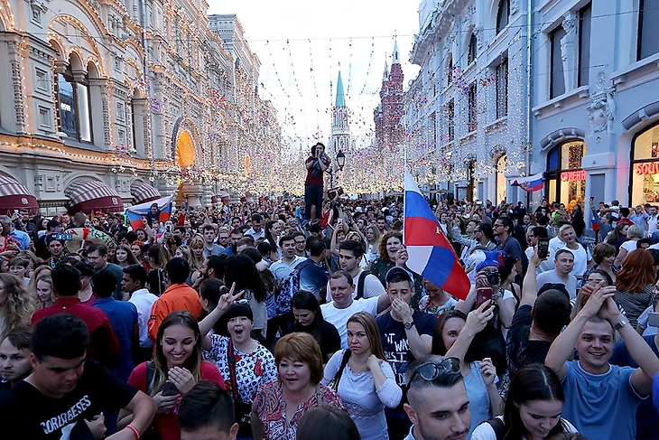 В далёком и счастливом прошлом, а именно в 2018 году улица Никольская сплотила фанатов футбола со всех уголков света. В частности, там россияне радовались победе в 1/8 над Испанией. Времена меняются и события тоже: теперь на Никольскую зазывают после рекордного количества касаний Кокориным в матче за Фиорентину, после голевого действия Захаряна за Сосьедад и прочих редких, но радостных событий для российских фанатов.