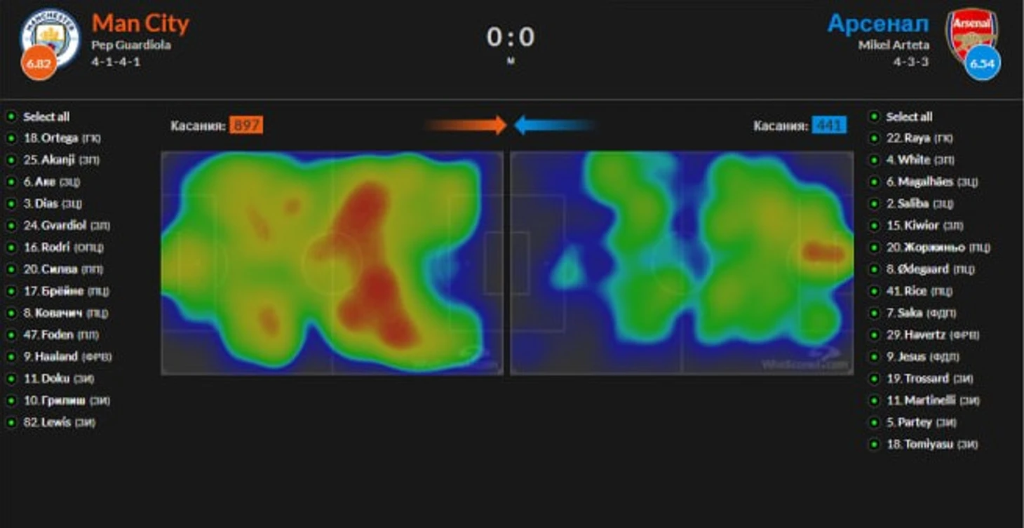По тепловым картам видно, что «горожане» заперли гостей на своей половине, но по самой игре канониры больше не выглядели мальчиками для битья, как это было в прошлом матче на «Этихад». Как минимум они смогли составить равноценную конкуренцию, это главный момент для психологической подпитки. К тому же подопечные Артеты выходили в контратаки и нанесли даже больше ударов в створе, чем хозяева. Один из таких моментов мог закончится голом, если к прострелу Саки быстрее откликнулся Жезус.