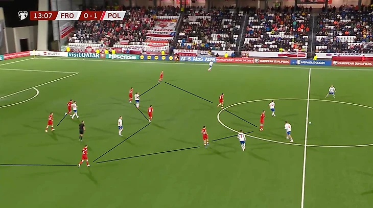 В игре с Фарерами и Албанией поляки долго запрягали, простояв в обороне 15 минут, но потом, что называется, очухались. Прессинга не было до тех пор, пока соперник не пересечет центр поля. Но и тогда он был весьма пассивный.