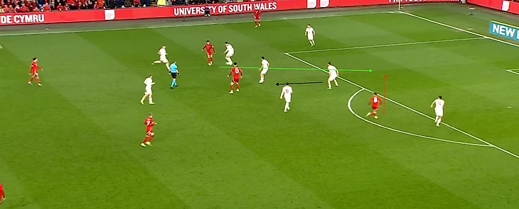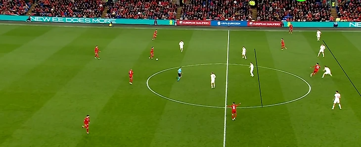 С Уэльсом поляки действовали по-другому. Линия обороны выстраивалась выше, а иногда даже появлялись очертания командного прессинга, пусть и недолгими порывами. Только есть вопрос: Зачем играть в искусственный офсайд против команды, которая опасна на контратаках и заведомо быстрее вашей?