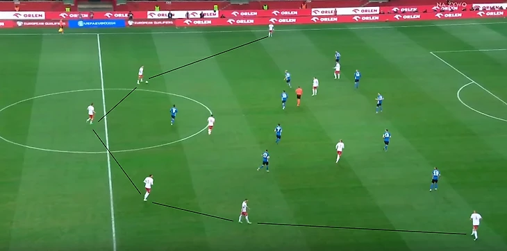 Если раньше у поляков были сильные фланги (Пишчек – Блашчиковски и Енджейчик – перспективный Капустка), то сейчас ситуация изменилась. Возможно, в этом и был смысл перестроения с четырех фланговых игроков до двух. При всем уважении к Франковски и Николе Залевски, но их атакующей остроты недостаточно, чтобы полностью отвечать за бровку.