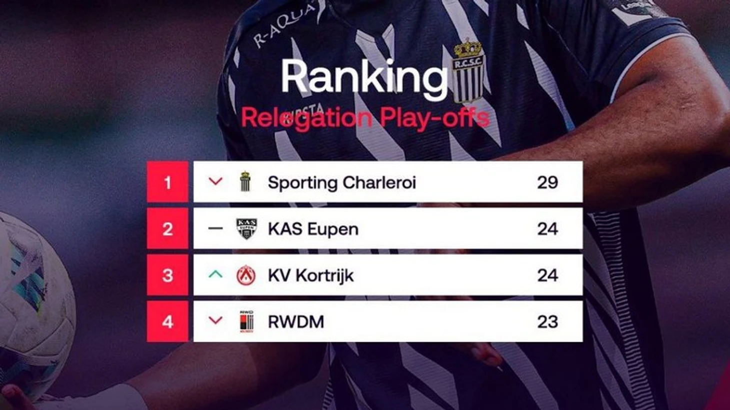 И вот наконец мы добрались до третьего плей-офф – битвы за выживание, в которой участвуют «Шарлеруа», «Эйпен», «Кортрейк» и «Моленбек». Лучший клуб спасется, второй попадет в стыки с победителем плей-офф второго дивизиона, а два аутсайдера вылетят напрямую.