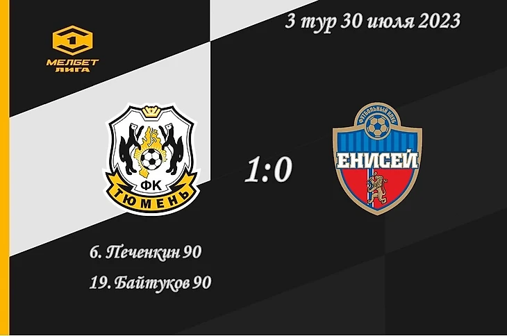 Праздничный футбольный микс, куда вошли одновременно сибирское дерби, День города Тюмени и День рождения тренера хозяев, начался не так, как хотелось бы домашней команде: два подряд выноса Любакова при прессинге красноярцев заставили екать сердца местных зрителей, помнящих ошибку вратаря туром ранее. На 29-й минуте Байтуков с Печенкиным смотрят футбол при проходе Ломакина по флангу – Савельев бьет в упор, Любаков тащит. Во втором тайме челябинская связка в центре защиты хозяев действует надежней, единоборства не проигрывает. Первая половина второго тайма – как будто одна большая позиционная атака Красноярска. И впервые спасать вратарю свою команду пришлось на 62-й минуте. Справедливости ради, у хозяев в это время обороняются не только двое сзади в центре, а 5-6 человек. В такой энергозатратной игре «Енисей» подустал и ослабил хватку. «Тюмень» пошла вперед – сначала робко, а потом все уверенней. Помог случай. На 75-й минуте Ломакин в не самой сложной ситуации отправил мяч за лицевую у своих ворот. Шитов с этого углового заработал стандарт – у самой границы вражеской штрафной площади. Принадлежащий «Енисею» Самойлов отличным ударом установил результат, который не поменялся. «Тюмень» забила 4-й гол в турнире после 5-ти ударов в створ.