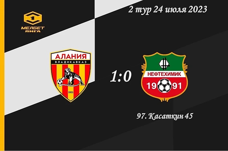 Нижнекамцы, как и в стартовом туре, создали момент уже на первой минуте. Тут, правда, голом это не закончилось. «Нефтехимик» – один из самых консервативных в плане состава коллективов Первой лиги. Вроде бы, потому что в матче в Грозном все хавы гостей в прошлом сезоне представляли другие коллективы: Петров – как раз «Аланию», Морозов – «Волгу», Касаткин – «Тюмень», Кокоев – «Краснодар-2». «Алания» завладела преимуществом, создала несколько моментов, однако организованный «Нефтехимик» отражал все угрозы. Сами гости пытались уравнивать диспозицию своими неплохими контрвыпадами. Все было так до 26-й минуты, когда Морозов получил прямую красную карточку за грубое нарушение правил. Матчеобразующее событие обозначило остаток тайма как тотальное доминирование владикавказцев, итогом которого стал красивый гол Машукова за 11 секунд до 45-го оборота минутной стрелки игрового времени. В перерыве Кирилл Новиков поменял Касаткина. Дебютная игра за новый клуб у Никиты не получилась. Во втором тайме у «Нефтехимика» начало что-то проклевываться, но до создания реальных угроз чужим воротам дело так и не дошло. За 20 минут до конца «Алания» подарила нижнекамцам шанс: за симуляцию вторым горчичником был награжден Николай Гиоргобиани. Однако уравнивание составов игру никак не изменило – красно-желтые довели встречу до победы.