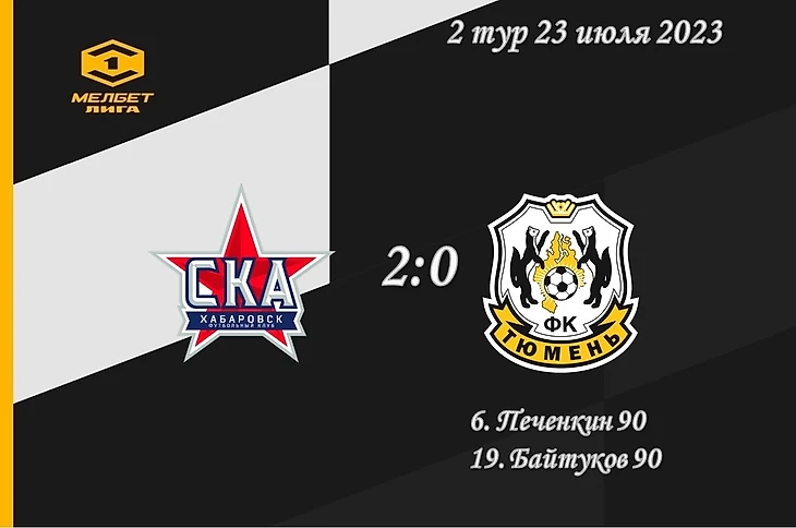 Армейцы сразу взяли инициативу в свои конечности. Хабаровчане баловали гостей разнообразием атакующих розыгрышей – и слева, и справа, и по центру. На 13-й минуте хозяева интересно разыграли угловой – Байтуков выбил мяч на еще один корнер. Групповой забег «СКА» после перепаса возле углового флага застал «Тюмень» врасплох – 1:0. Тюменцы подравняли, но какой в этом толк, если твоя команда уступает? Второй тайм активнее начали хозяева. К его середине сибиряки заново забрали инициативу. Меньщиков сделал хорошие замены – моменты у ворот Сугробова создавались, но голами не оканчивались. В самом конце черно-белые заметно засуетились, чувствую, что взятие чужих ворот, а вместе с ним и очки, близко. В одном моменте Любаков и Синяк уже продумывали следующие шаги очередной атаки своей команды, и не вспомнили, что за вратарской спиной тюменцев никого нет. Алиев забил, самый, наверное, простой гол в карьере. Хабаровск сделал вторые 2:0 в двух турах.
