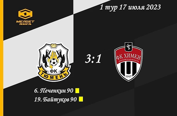 В Тюмени заждались Первую лигу. В некоторых местах наших урало-поволжско-сибирских широт 4 года – смешной срок для ожидания повышения в классе, где-то ждут намного дольше. Из нынешнего созыва только Александр Бем был в тюменской команде образца 2018-го года. Внушительная посещаемость, от которой отвыкли, создала организаторам проблемы – некоторые болельщики смогли из-за очереди на контроле смогли попасть внутрь стадиона только к исходу получаса игры. «Тюмень» – одна из 4-х последних команд, попавших в Первую лиге «безбуферным» способом, очень серьезно обновилась, что логично. ФИФА запретила «Химкам» регистрировать новичков, чем невольно устроила настоящий праздник в Тюмени. Тренер гостей Андрей Талалаев вынужден был выставить состав, сильно далекий от оптимального. Это очень помогло хозяевам добиться результата. Даже в таком составе «Химки» пытались владеть мячом. За что к исходу первой десятиминутки поплатились: перепас на своей половине привел к пенальти в ворота Митрюшкина. Порохов перебивал – и со второй попытки открыл счет. На 31-й минуте Байтуков при неудачном розыгрыше хозяевами углового вынужден тактически фолить на Коряне – с получением желтого предупредительного прямоугольника. На 40-й минуте Порохов в не самой очевидно ситуации нарушает правила в своей штрафной. Руденко свою возможность использует сразу – 1:1.