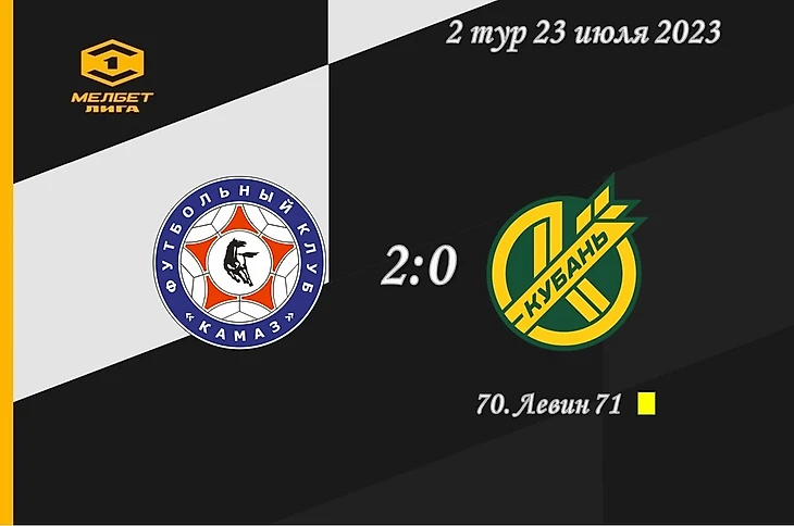В Набережных Челнах Гаррик Левин вышел в нападении. После пары хороших подходов «КамАЗа» «Кубань» совершила симпатичную контратаку – пара форвардов Лаук-Левин продемонстрировала неплохое взаимопонимание и отличное открывание обоих, мяч при противодействии защитника уходит за лицевую. У ворот кубанца Нестеренко возникает много стандартных положений. На 14-й минуте состоялся голевой момент после углового – вратарь спас команду после удара головой хозяйского футболиста. Почти сразу же долгая позиционная атака «КамАЗа» провоцирует на грубый фол вынужденного отойти назад Левина – желтая карточка и еще один стандарт. К получасу игры владение 69 на 31, угловые – 5:0. Воплотилось челнинское преимущество в гол на 39-й минуте, пришедший из очередной позиционной атаки. Символично, что первый мяч «КамАЗа» в чемпионате оформил Александр Гаглоев – действительно, местный символ.