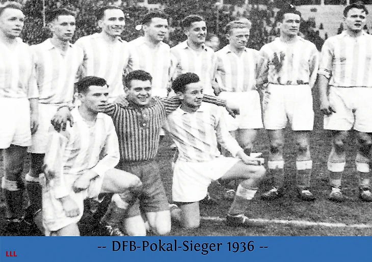 Об этой команде я уже упоминал ранее, когда делал обзор клубов, побеждавших в немецком первенстве ДО образования Бундеслиги. «Лейпциг» отпраздновал свой триумф в Кубке в 1936 г., став 2-ым его победителем. Первопроходцем стал «Нюрнберг», победивший в самом 1-ом розыгрыше трофея в сезоне 1934/35, взяв верх над гегемоном 30-ых годов «Шальке» 2:1. Ныне этого «Лейпцига» не существует уже более 20-и лет с момента расформирования, а в элите играет РБЛ, 2-жды подряд побеждавший в Кубке Германии: в 2022 и 2023 гг.