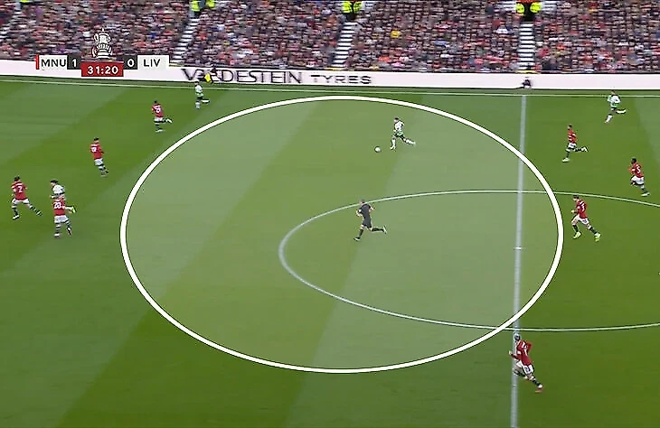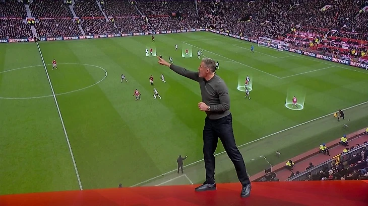 «Посмотрите на позиции игроков, − говорит Джейми в студии Sky Sports. − Диогу Далот не может получить передачу. Майну находится на последней линии. Его позиция не может быть правильной. Бруну Фернандеш играет как нападающий. На другом фланге Виктор Линделеф не может принять мяч.