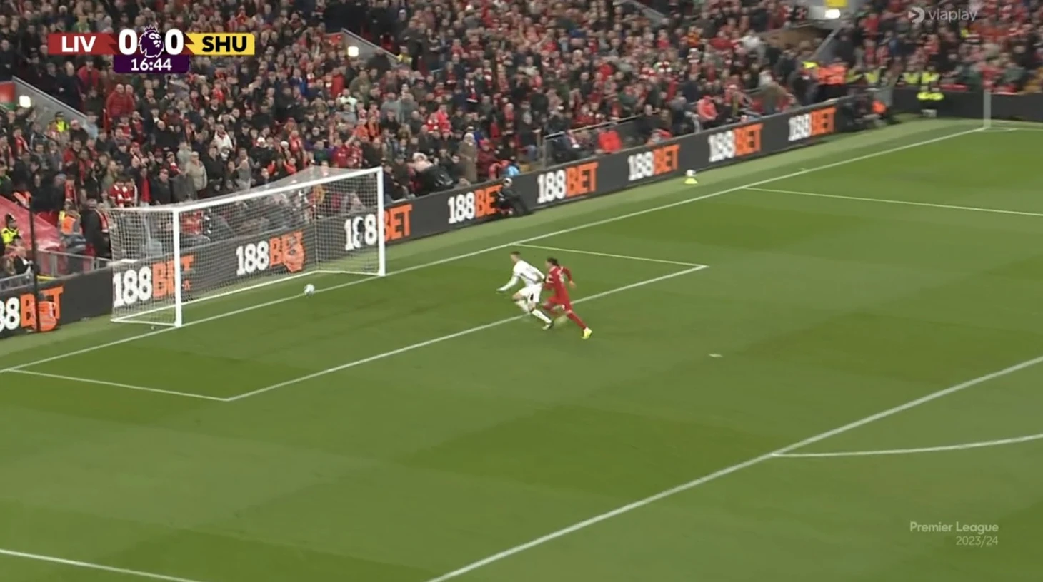 «Ливерпуль» открыл счет на 17-й минуте. Дарвин Нуньес забил гол, который смело может претендовать на звание самого курьезного мяча этого сезона АПЛ! Такой красоты не случилось бы без ошибки голкипера «Шеффилда».
