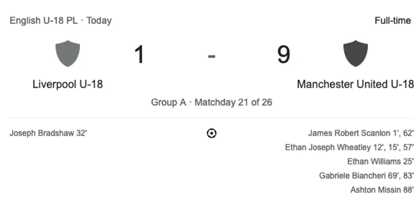 😨 Тотальное уничтожение! «МЮ U18» не оставил камня на камне от сверстников из «Ливерпуля»