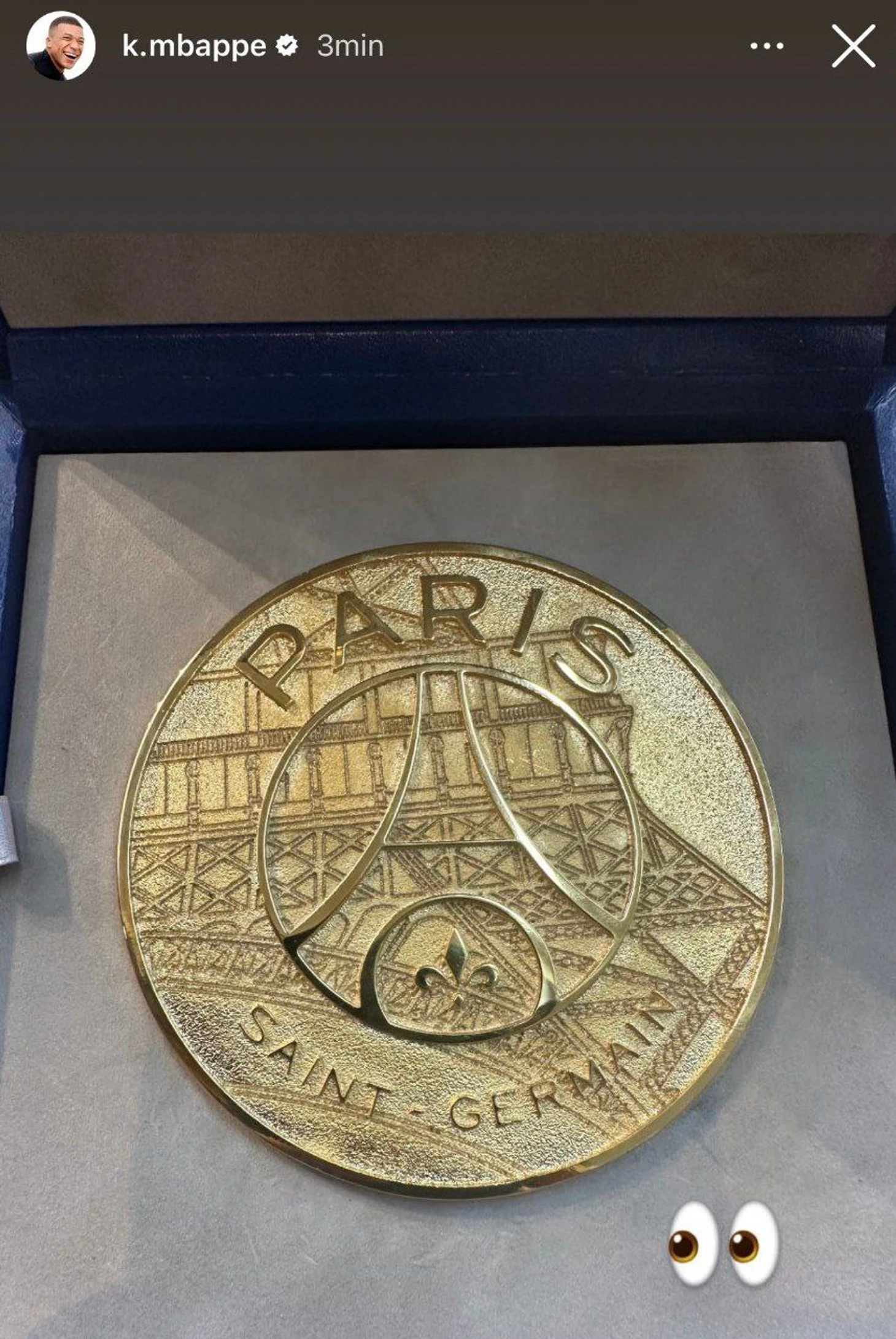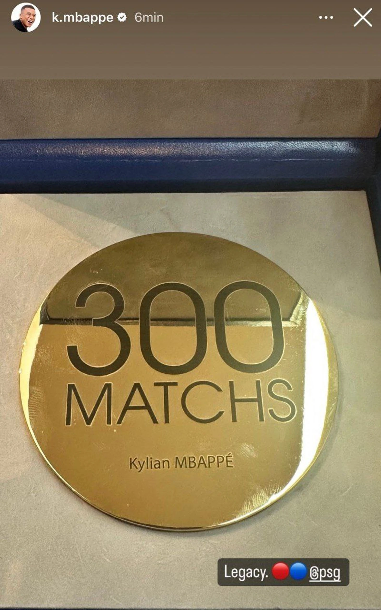 Килиан получил памятную медаль, которой похвастался перед подписчиками.