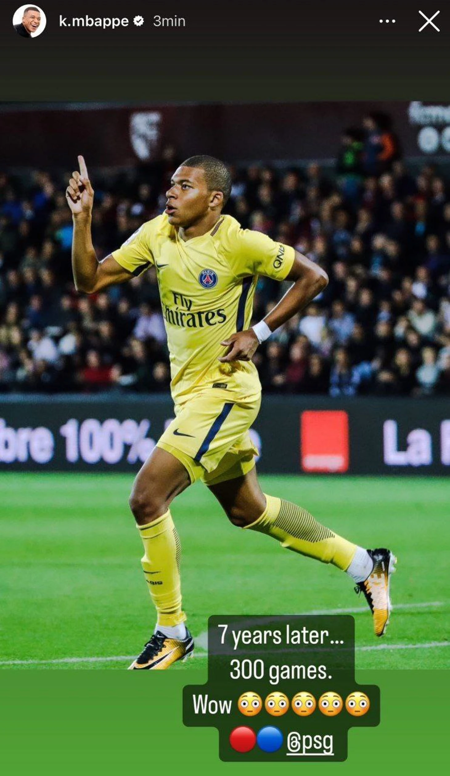 «7 лет спустя... 300 матчей. Вау!» – написал нападающий в соцсетях.