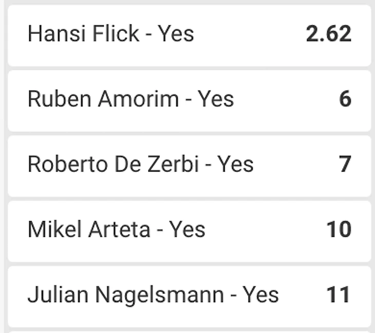 По мнению букмекеров, сейчас лидирует экс-главный тренер «Баварии» Ханси Флик - коэффициент на то, что именно он станет преемником Хави, составляет всего 2,62 (38,2%).