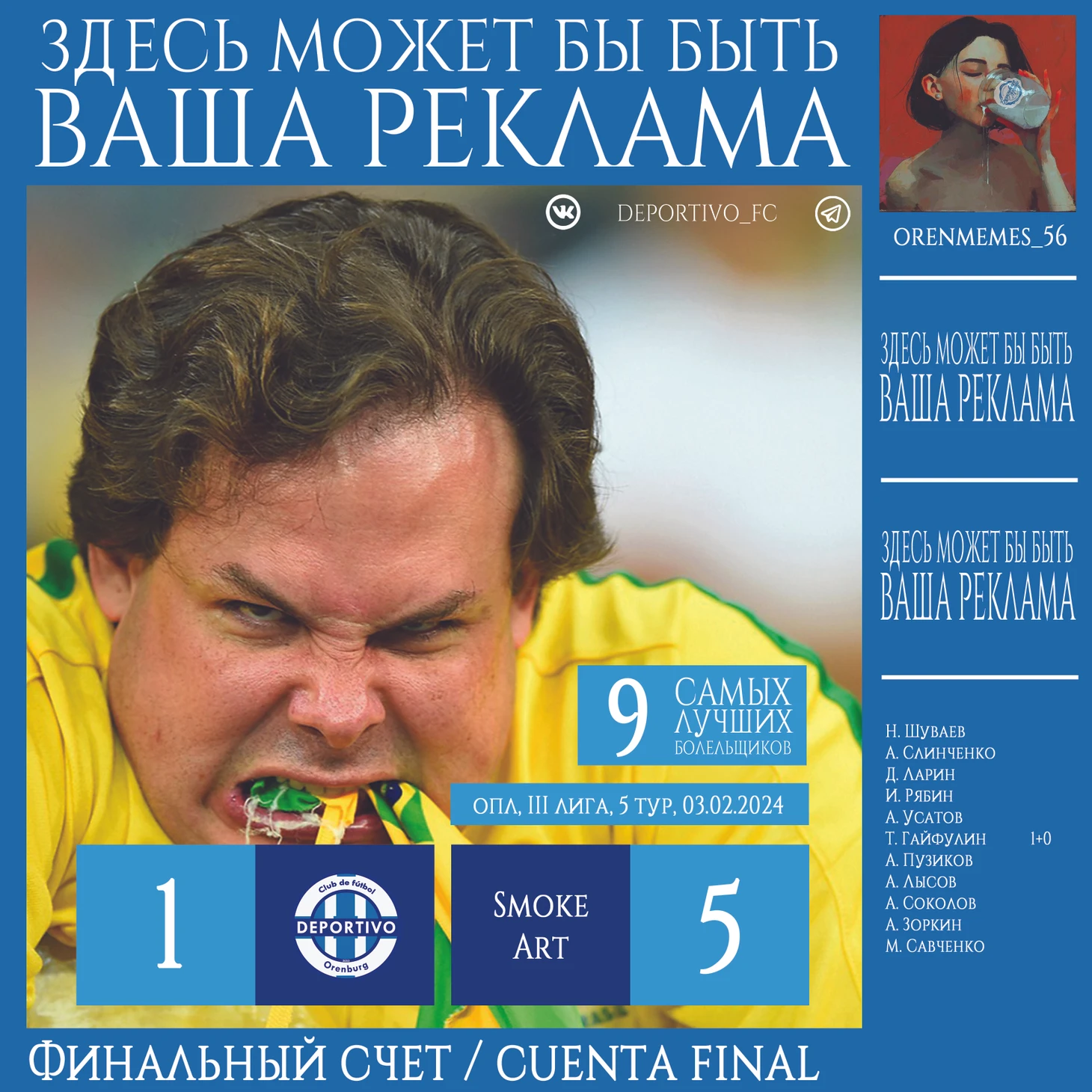 Пятый тур мы проводили с одной из самых техничных команд нашей лиги. Уступили мы по всем статьям, так как соперник был острее, быстрее, нацеленнее на ворота.