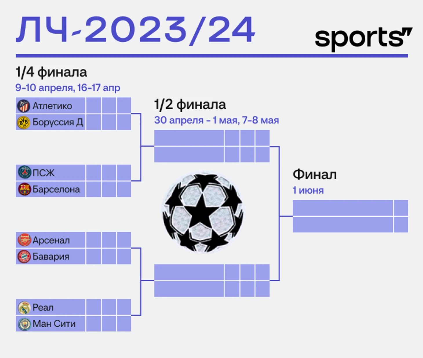Превью Лиги Чемпионов 23/24. Арсенал не упустит шанса отомстить Баварии, классика Реал и Сити, и ПСЖ Барселона в 1/4