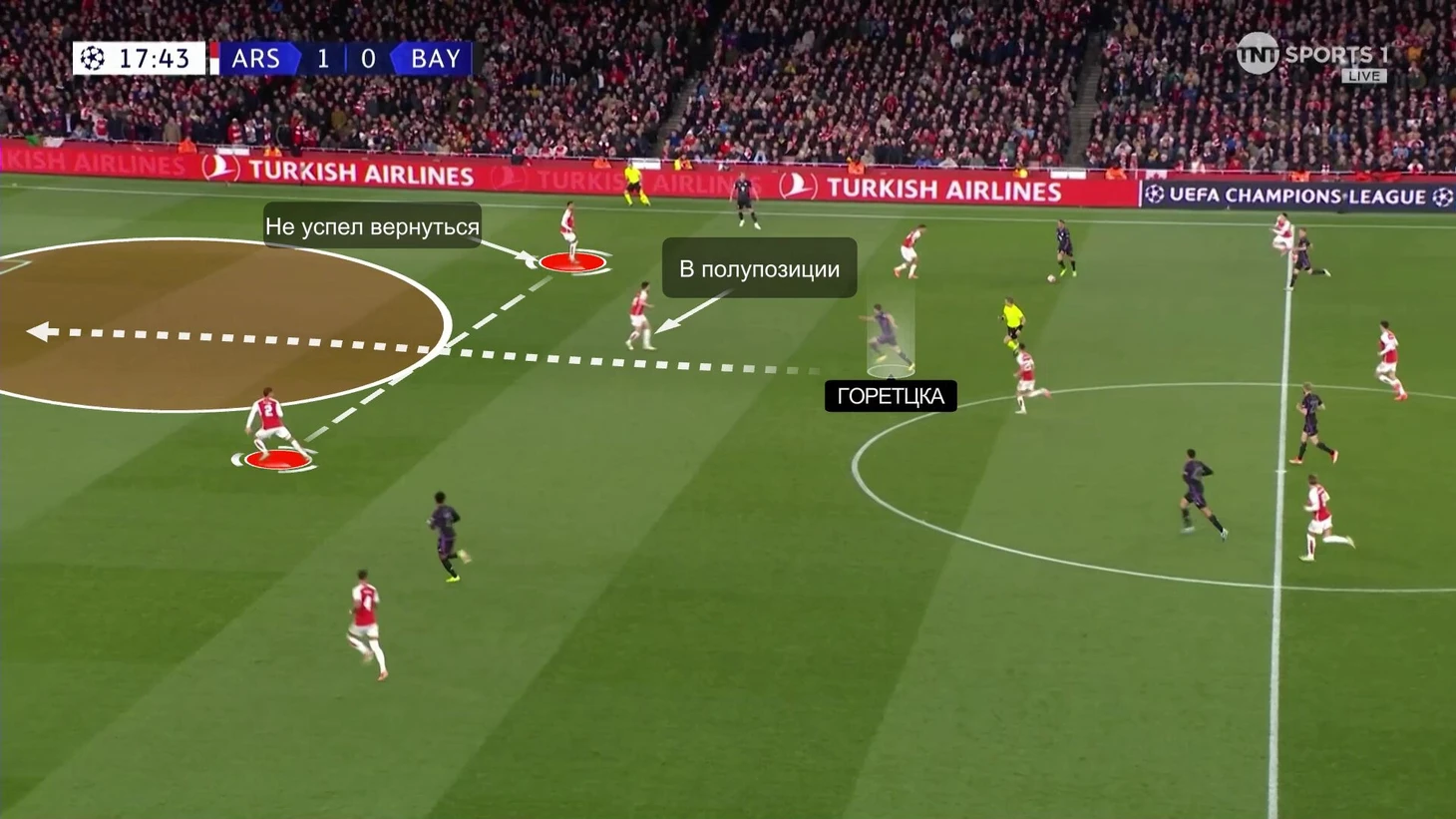 Дальше на эпизод блестяще отреагировал Горетцка. Фирменным рывком вскрыл зону, которая образовалась сразу после потери, а завершил наказание Гнабри: