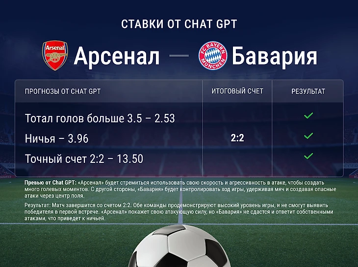 Chat GPT угадал счет 2:2 в матче «Арсенал» – «Бавария»