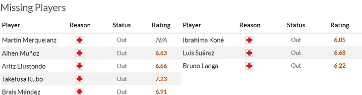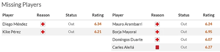 Кроме того, сегодня в общую группу вернулся Такефуса Кубо(8), который вполне может получить минуты в воскресенье. А у гостей продолжает отбывать четырехматчевый бан Гонсало Мелеро(6,5). Опасное это дело - комментировать работу испанских футбольных арбитров.