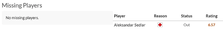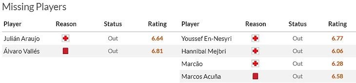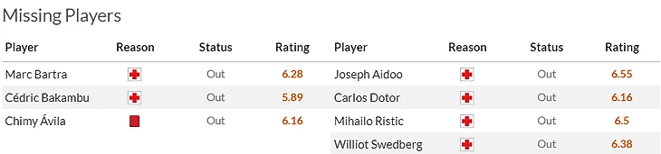 Впрочем до лета еще далеко, но у огурцов и в настоящем дела идут неплохо. Последняя новость - возвращение в строй Седрика Бакамбю(7,5) который усилит конкуренцию в атаке андалусийцев. Что касается гостей, то сегодня они не смогут рассчитывать на травмированного Ренато Тапию(6)