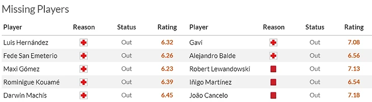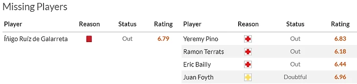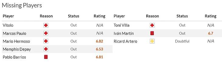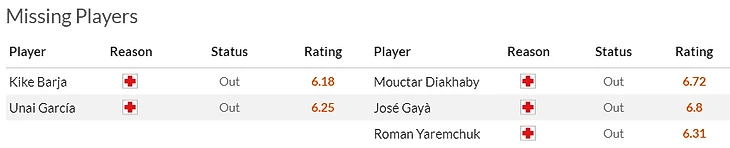 Что касается потерь, то у хозяев травмирован один из многочисленных гарсий - Унай Гарсия(5) и Оймар Орос(6.5), а у хозяев под вопросом попадание в заявочный лист не совсем здоровых Гайя(6) и Яремчука(7).