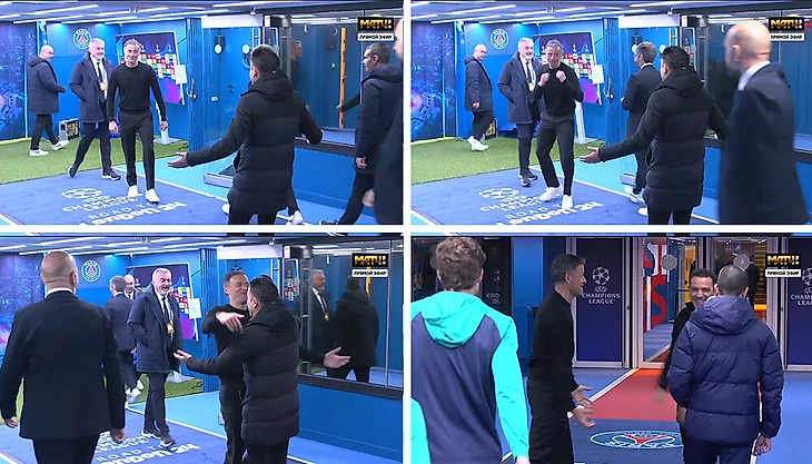 За несколько минут до старта матча в трансляции показали забавный эпизод: встречу тренеров в подтрибунке на «Парк де Пренс». Тон задавал хозяин: как будто удивился, кого видит, изобразил боксера, обнял.