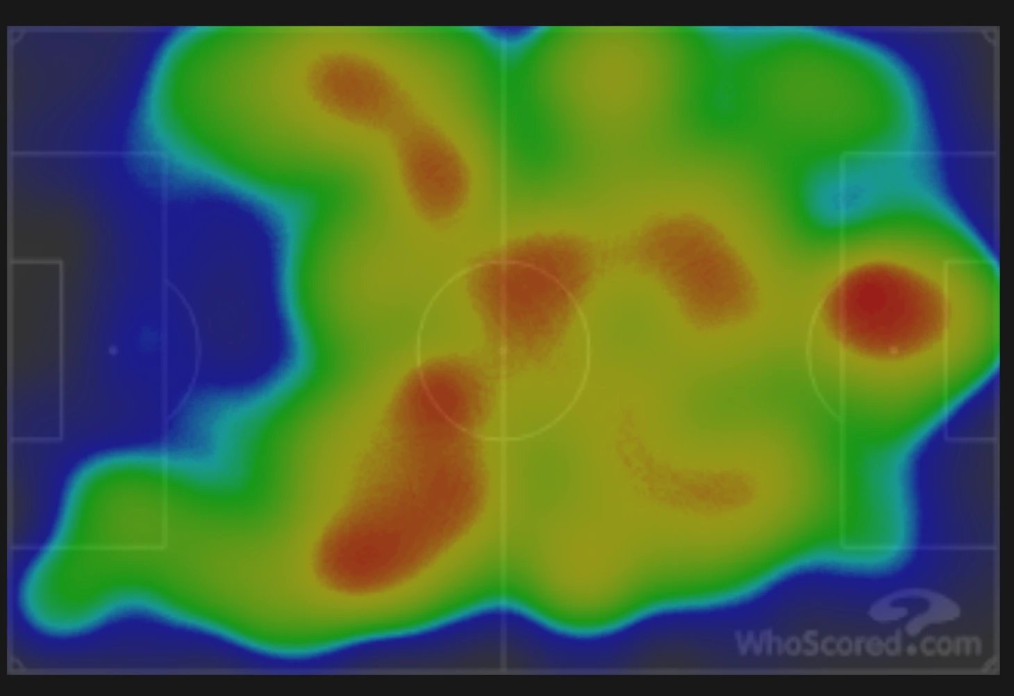 Вот тепловая карта «Дортмунда». Большую часть матча «Атлетико» держал соперника на безопасном расстоянии и отлично перекрыл центр, толкнув на фланги. Фланг Аспи – вообще без проникновений: