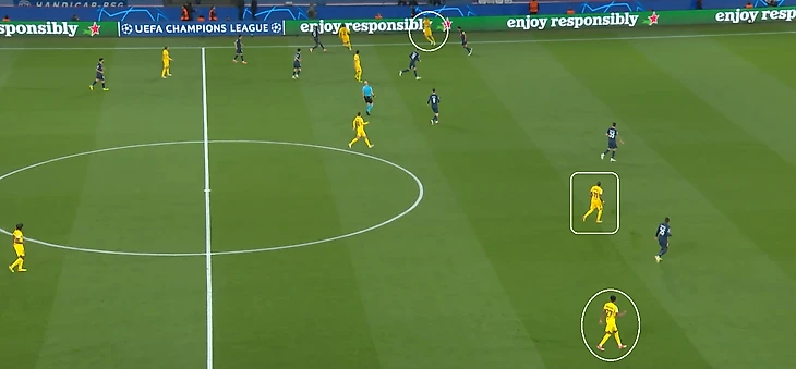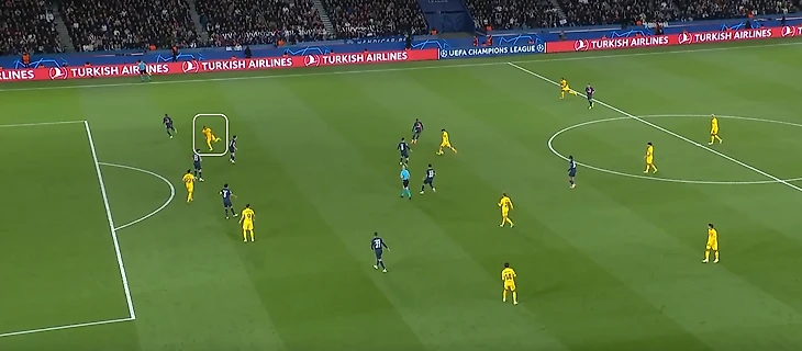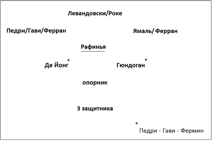 В этом матче Рафинья в основном играет в центре, а не на флангах, активно взаимодействует с Робертом. Левый край отдан на откуп Кансело. Ламин во взаимообмене позициями активно не участвует, остается на правом фланге. Правый фланг в действиях Рафиньи появляется только с выходом Жоао Феликса вместо Ямаля. Гюндоган в ряде эпизодов поднимается в линию к нападающим.