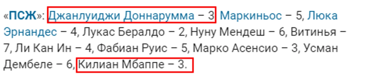Ноль ударов, одна-две успешные обводки и 14 потерь за 90 минут. Вот это я понимаю - успешный игрок. И ведь действительно, он проявил себя. Сыграть так плохо для такого игрока не типично. Тут действительно нужно постараться. И если для Доннаруммы после ухода из Милана за победой в Лиге Чемпионов тройка - рядовая оценка, то для Клиана - нет. Но что не сделаешь, чтобы проявить себя. Кариока не даст соврать.