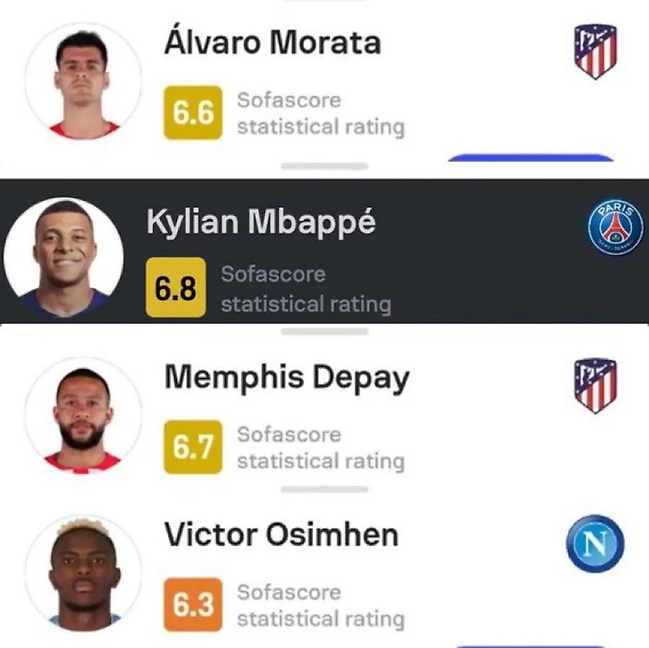 Кстати, ни один из четырех вышеупомянутых нападающих не смог заработать рейтинг выше 6,8 по версии SofaScore.